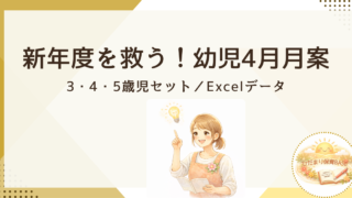 3・4・5歳児の担任の先生必見!新年度の事務作業を激減させる『幼児3学年・4月月案テンプレート』をリリースしました。保育士歴20年の知恵を詰め込んだExcelデータ。10の姿を意識した専門的な文例で、忙しい4月に心のゆとりを作りましょう。