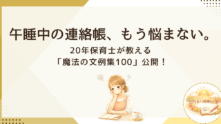 午睡中に連絡帳を終わらせたい保育士さん必見!20年の経験から生まれた「そのまま写せる文例集100」を紹介。年齢別の連絡帳フレーズや個人票の書き方テンプレートで、事務時間を大幅短縮。