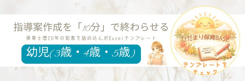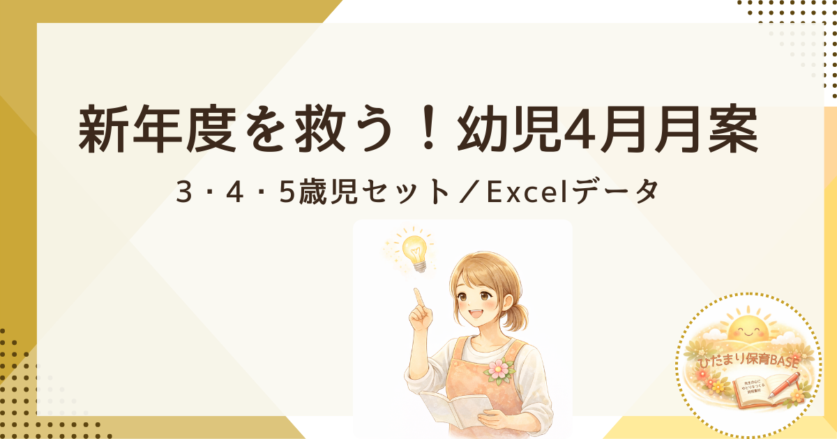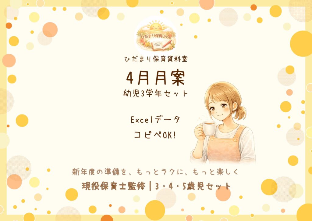 そんな想いに応えるべく、保育士歴20年の経験を詰め込んだ「幼児3学年(3・4・5歳児)4月月案テンプレート」をリリースしました。